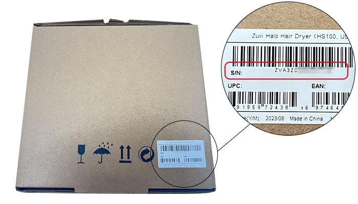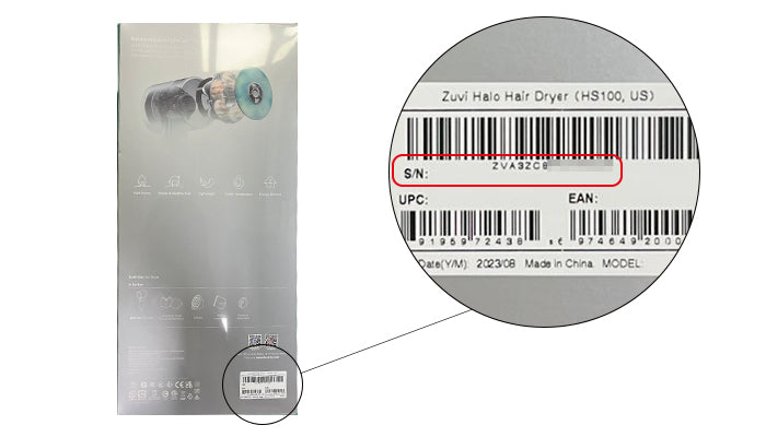 3: Alternatively, you can unscrew the round, white cover on the back of the hair dryer and find the unit's serial number on the sticker on the back of the cover, or scan the QR code on the same sticker to pull it up directly on your phone and easily copy and paste it.